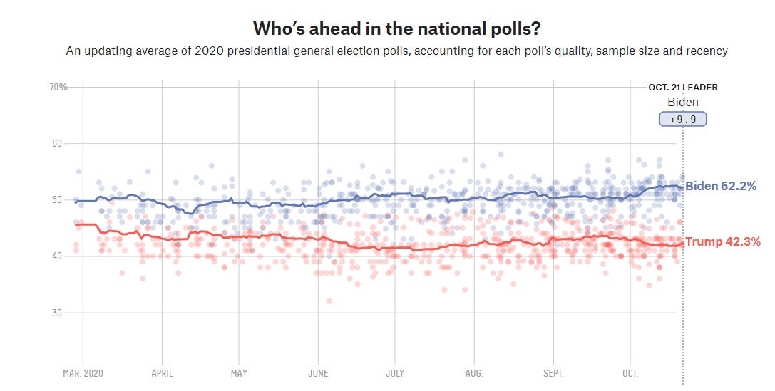 Tot i això, ara mateix les enquestes són extremadament positives per Biden, i per tant, només alguna bomba aquests darrers dies podria representar un canvi substancial.