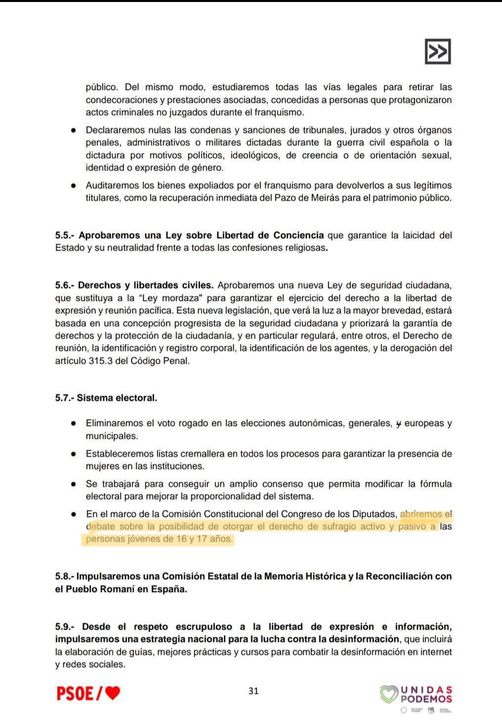 💃La butlleta ballant xotis: el gobierno PSOE-Podemos compleix el seu compromís electoral amb el dret a vot dels menor de 16 i 17 anys