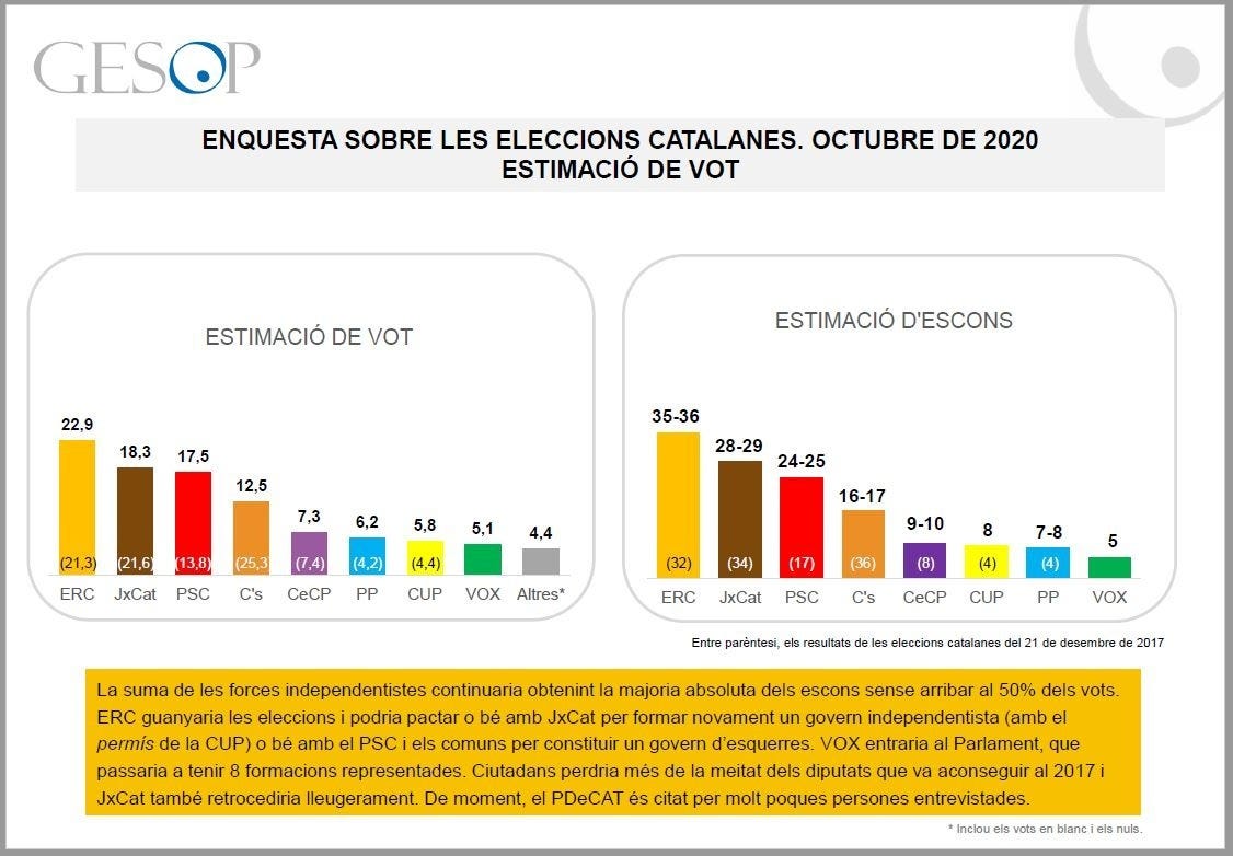GESOP, una de les enquestadores més reputades, ens va oferir ahir dijous una nova enquesta sobre el Parlament.