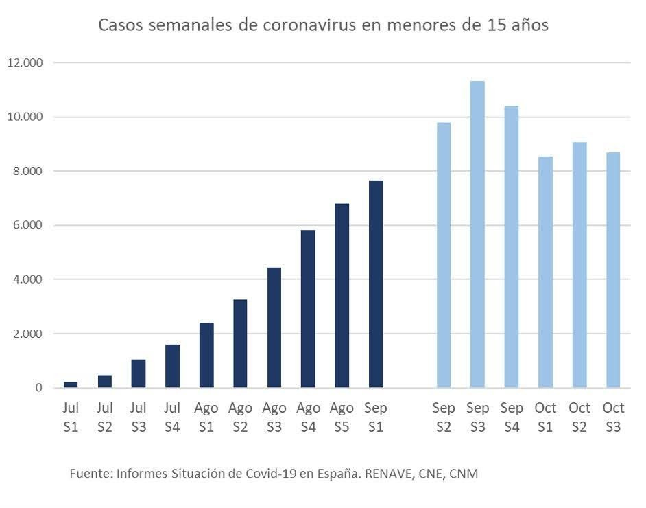 Durant tot l’estiu, el principal “ariet” contra el govern van ser les escoles. No es podien obrir. Si ho feien serien el gran focus de contagi, i no, no ho han estat. De fet, el gràfic demostra que es contagiaven més nens a casa que a l’escola.