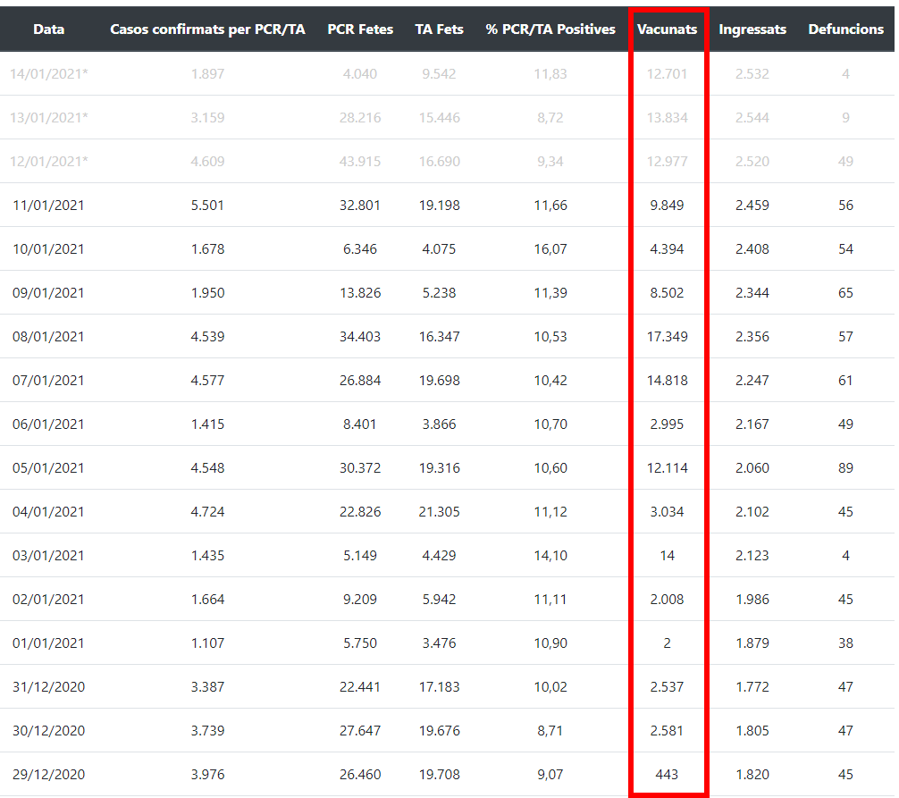 Nota: no voldria acabar de parlar sobre vacunes sense un agraïment etern a tot el personal sanitari i de la conselleria que ho està fent possible. Veure infermeres renunciant a les seves merescudes vacances de Nadal, superant neu i mal temps, per continuar a bon ritme la vacunació em torna a reafirmar en que som una societat que malgrat tot sí val la pena.